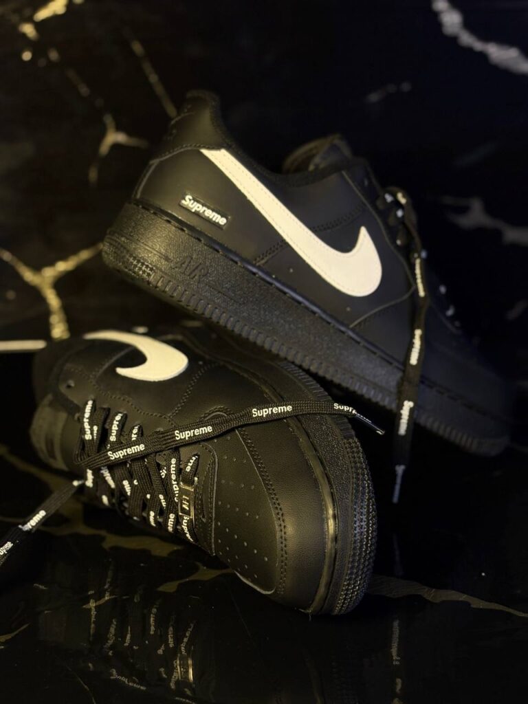 Tenis Force One negros Supreme, con diseño urbano icónico, materiales resistentes y comodidad, ideales para uso diario con estilo exclusivo