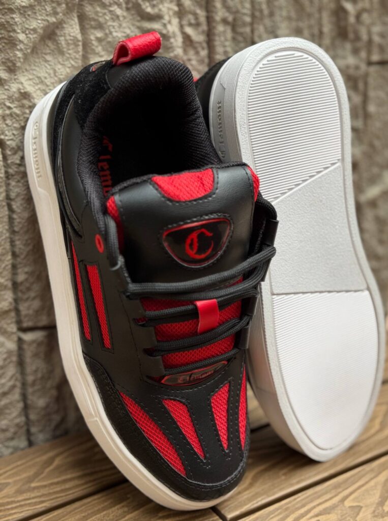 Tenis Clemont rojos con diseño moderno, cómodos y versátiles, ideales para uso diario con un estilo urbano llamativo.