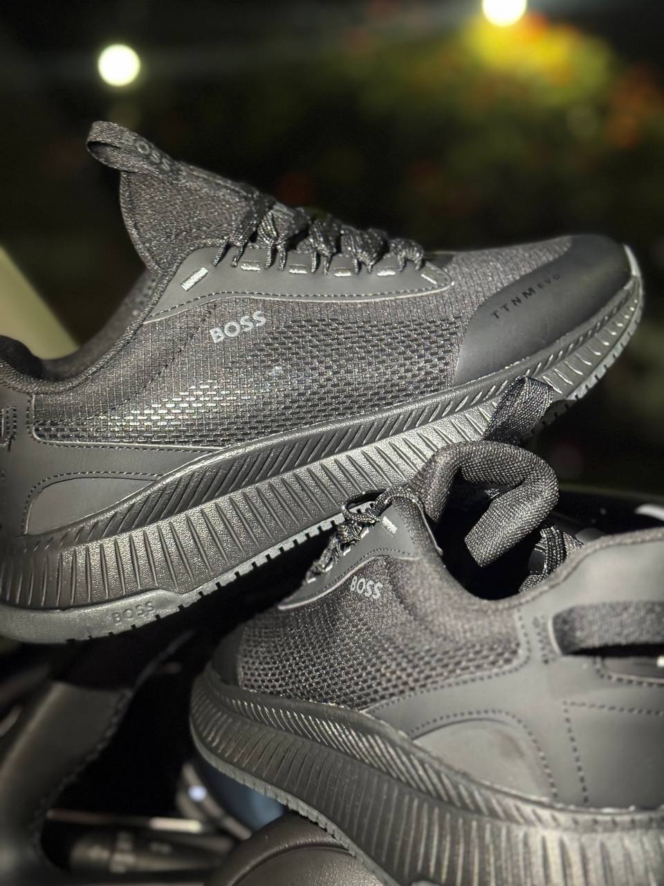 Los BOSS TTNM EVO combinan diseño deportivo con lujo contemporáneo. Su parte superior en negro con acabado textil premium y la suela blanca robusta crean un contraste sofisticado y moderno.